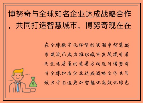 博努奇与全球知名企业达成战略合作,共同打造智慧城市,博努奇现在在哪个俱乐部
