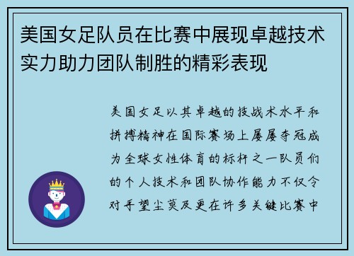美国女足队员在比赛中展现卓越技术实力助力团队制胜的精彩表现
